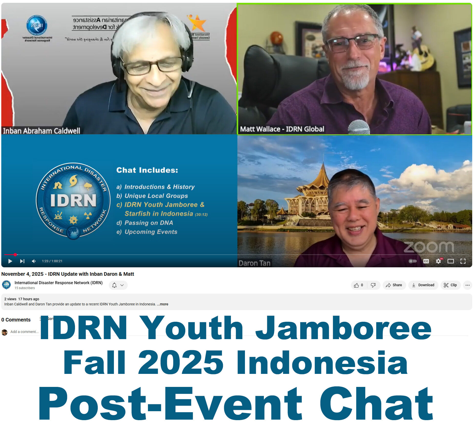 There was an event in Indonesia recently that I was originally scheduled to attend, but didn’t due to family health issues. This IDRN Youth Jamboree and Starfish Conference evidently went really well. In this video chat, the guys tell us about that event.